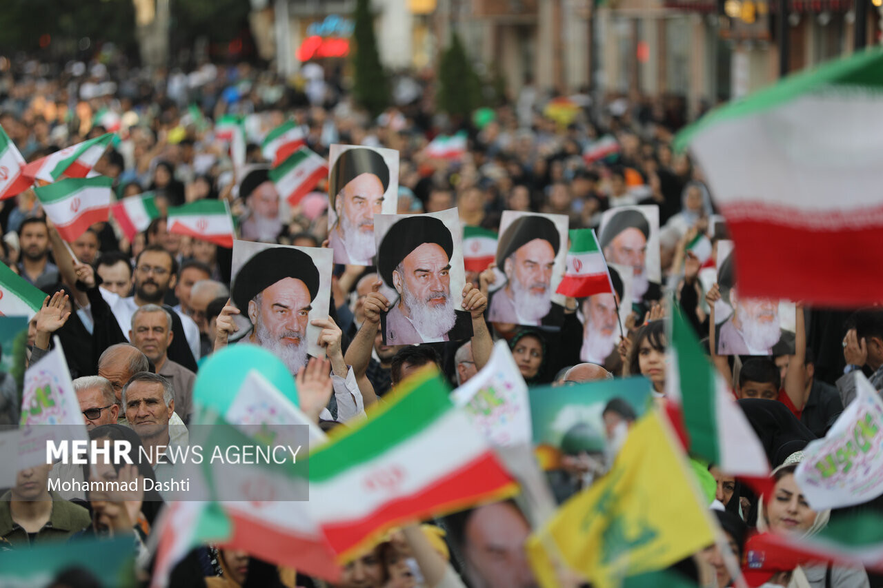 The kilometer-long Ghadir March, with the slogan "Iran; Zulfiqar of Ali," was held simultaneously nationwide on Saturday afternoon, June ۱۴, ۲۰۲۵.