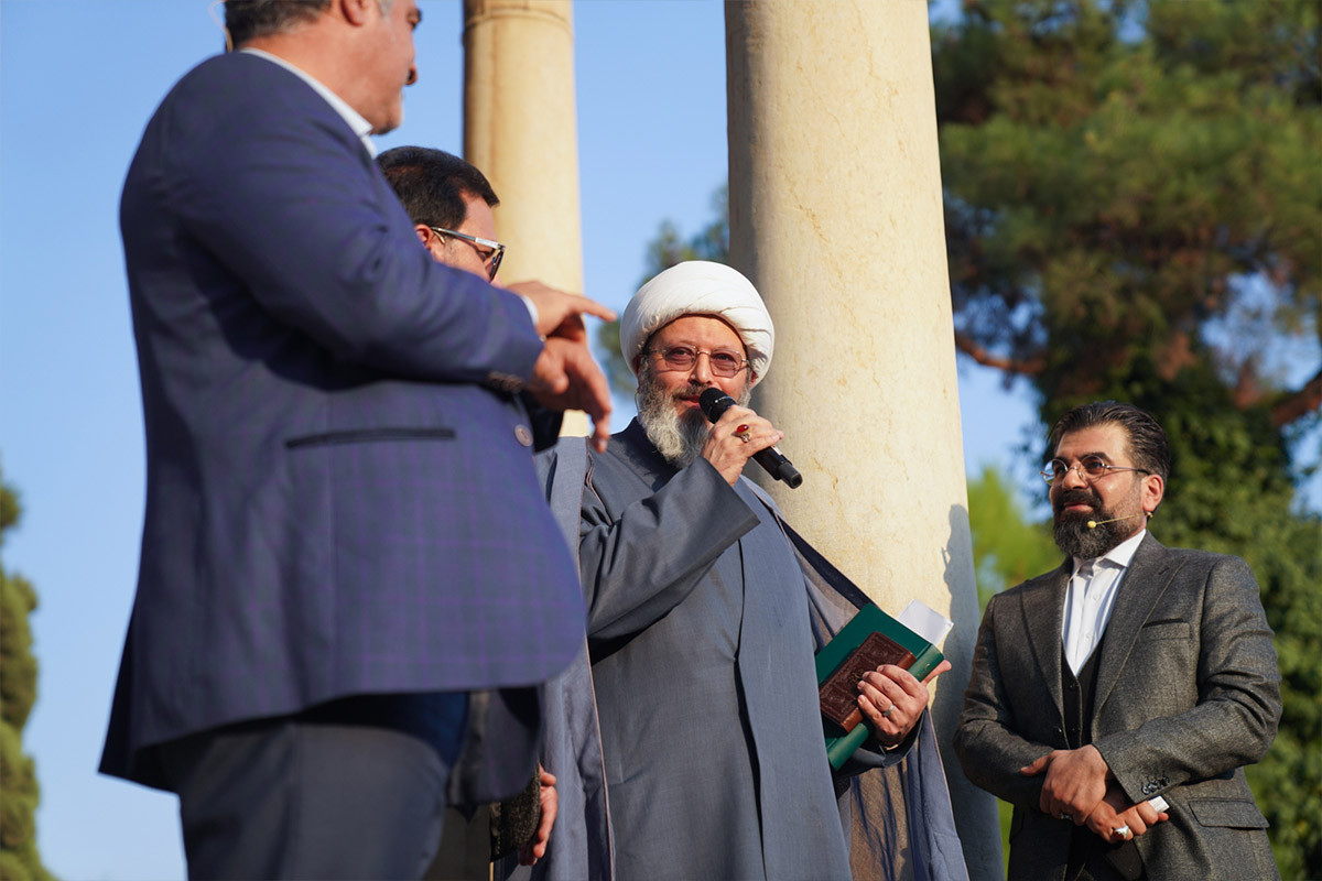 The television program Mahfel is a popular Qur’anic program broadcast by the Islamic Republic of Iran Broadcasting (IRIB). In special events and through travels to different cities, it organizes numerous celebrations together with the people. One of these celebrations was held in Shiraz, coinciding with Hafez Commemoration Day, beside the tomb of this renowned poet. Khwaja Shams al-Din Mohammad Hafez of Shiraz is one of the most famous Iranian poets who, in addition to composing his celebrated poems, had also memorized the Qur’an, the holy book of Muslims.