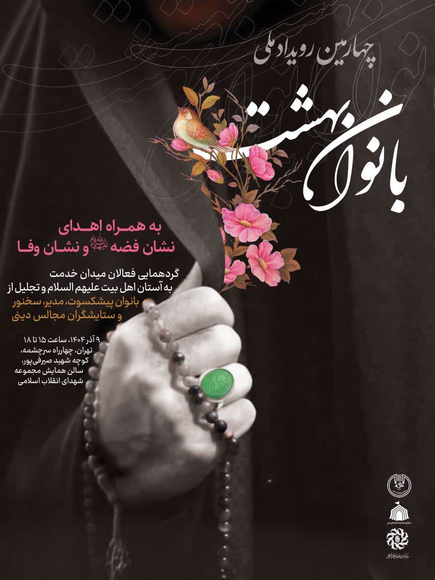 چهارمین رویداد ملی «بانوان بهشت» با حضور فعالان میدان خدمت به آستان اهل‌بیت (ع) و به انگیزه تجلیل از بانوان پیشکسوت، مدیر، سخنور و ستایشگران مجالس دینی آذرماه برگزار می‌شود.