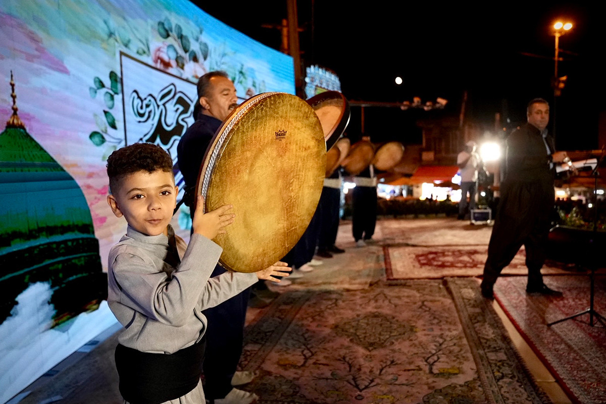 正值团结周,伟大的仁慈先知诞辰庆祝活动在萨南达季举行,有数万名库尔德斯坦民众和来自伊朗各地的嘉宾参加。今年,萨南达季以口号**“阿里是先知的爱”**举办了该国最宏伟的民众庆祝活动之一,再次展现了什叶派和逊尼派在自豪的库尔德斯坦土地上团结友爱的神圣体现。