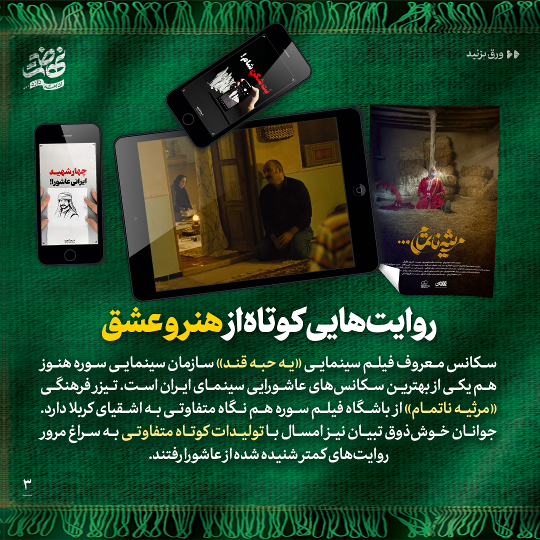 به گزارش روابط عمومی سازمان تبلیغات اسلامی، به بهانهی اربعین حسینی و اجتماع باشکوه عاشقان حضرت ثارالله در طریق الحسین، در این شماره از نشریه دیجیتال مروری میکنیم بر برخی از آثار و تلاشهای خانوادهی سازمان تبلیغات اسلامی که هریک عرض ارادتی است به ساحت والای حضرت اباعبدالله الحسین علیهالسلام به زبان هنر و رسانه.
