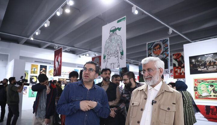 سعید جلیلی در بازدید از نمایشگاه «همچنان طوفان» گفت: این نمایشگاه نمونهای ارزشمند از عزم جدی هنرمندان در بیان مظلومیت فلسطین است. اگرچه ما نیاز داریم تا چنین اقداماتی در دیگر شاخههای هنری از جمله عکس، فیلم، سریال و حتی شعر و داستان هم اجرایی شود و اجازه داده نشود که رژیم صهیونیستی با تزویر و استفاده از رسانههایی که در اختیار دارد علاوه بر بکارگیری ابزار نظامی، از هنر هم برای پوشاندن مظلومیت مردم فلسطین استفاده کند.