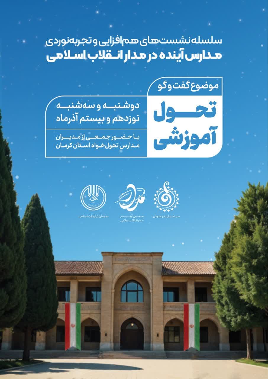 این سلسله نشستهای همافزایی و تجربهنوردی مدارس آینده که در راستای راهبری و کمک به رشد مدارس برگزار میشود، روز دوشنبه ۱۹ آذر ماه ویژه مدیران مدارس شهرستان کرمان و روز سهشنبه ۲۰ آذرماه ویژه مدیران مدارس شهرستانهای استان برگزار میشود.