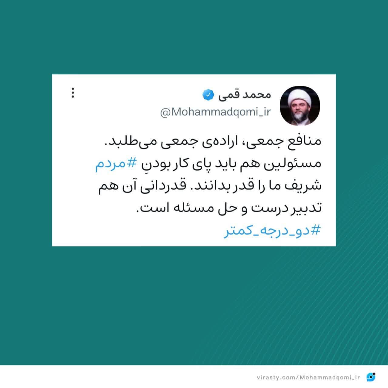 ۲۷ آذر | حجتالاسلام قمی در صفحه شخصی خود نوشت؛