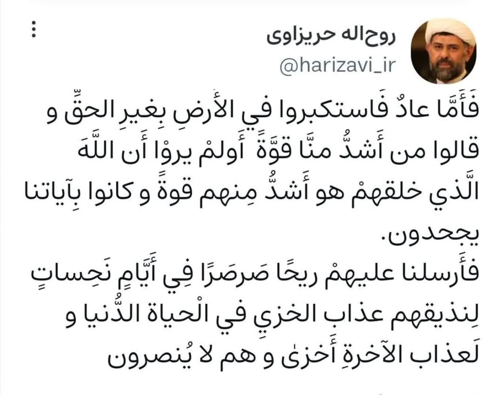 ▪️فأَرْسَلْنَا عَلَيْهِمْ رِيحًا صَرْصَرًا فِي أَيَّامٍ نَحِسَاتٍ لِنُذِيقَهُمْ عَذَابَ الْخِزْيِ فِي الْحَيَاةِ الدُّنْيَا ۖ وَلَعَذَابُ الْآخِرَةِ أَخْزَىٰ ۖ وَهُمْ لَا يُنْصَرُونَ ﴿١٦﴾
