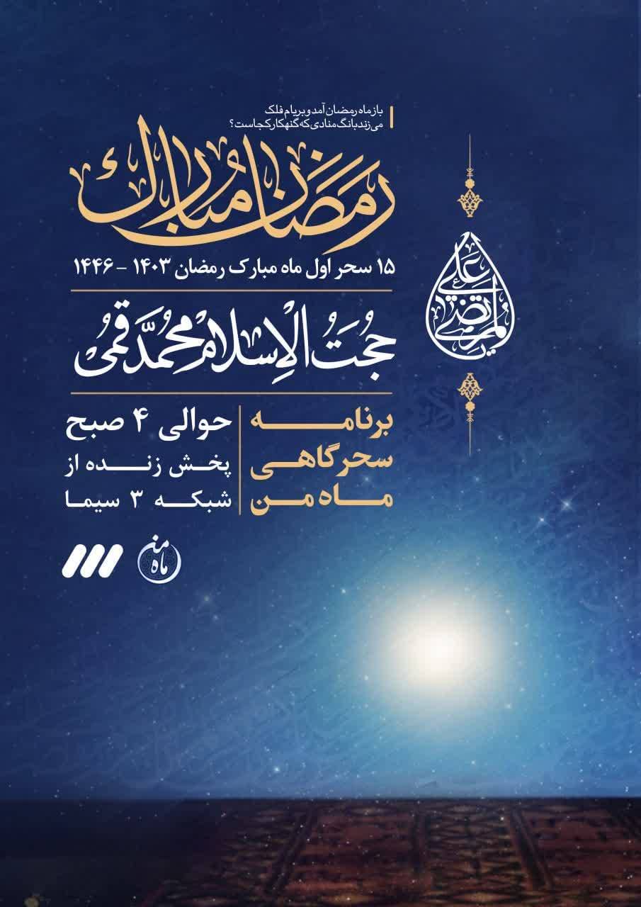 حجتالاسلام محمد قمی، رئیس شورای توسعه فرهنگ قرآنی در ایام ماه مبارک رمضان میهمان برنامه سحرگاهی «ماه من» میشود.