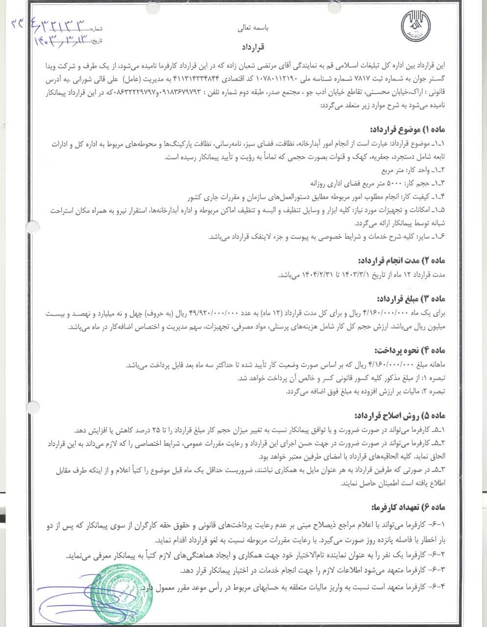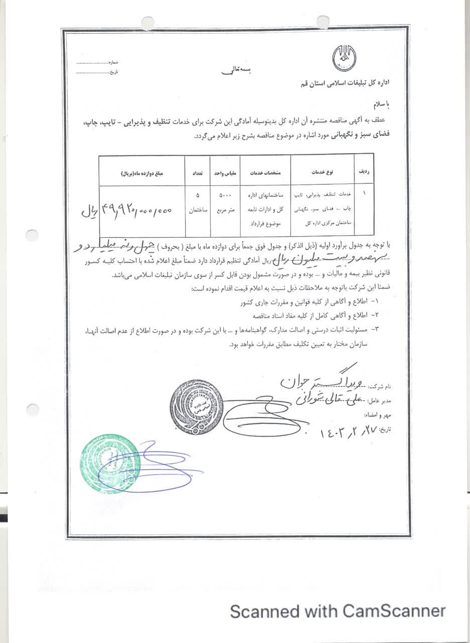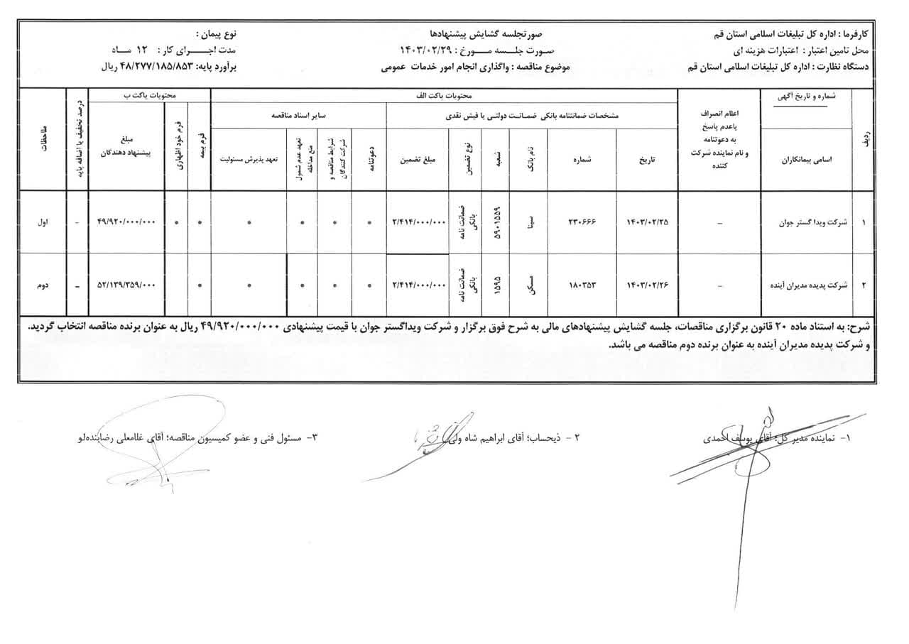 مناقصه خدمات پشتیبانی اداره کل تبلیغات اسلامی استان قم در اردیبهشتماه سال ۱۴۰۳ برگزار شد.