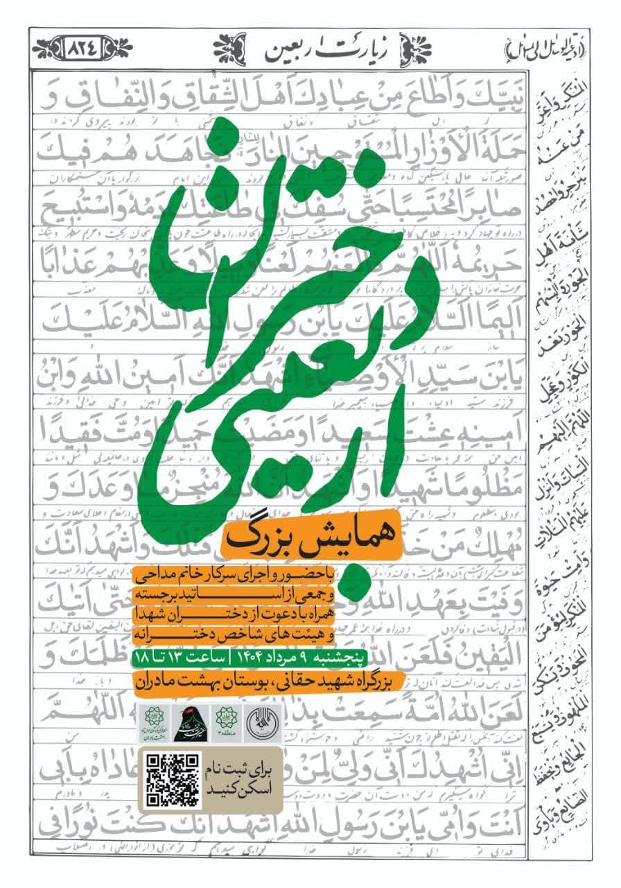 اولین گردهمایی بزرگ دختران تهران با محوریت توانمندسازی فرماندهان ظهور ۹ مرداد ۱۴۰۴، با حضور بیش از ۱۲۰۰ دختر نوجوان و جوان در بوستان بهشت مادران (پارک بانوان) برگزار میشود.
