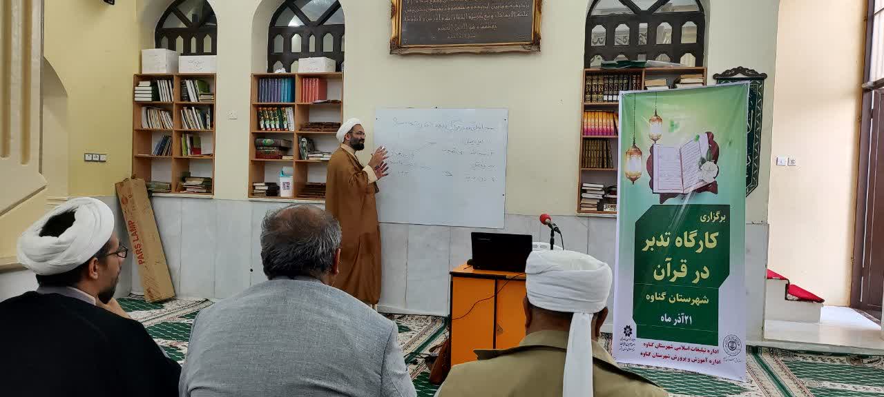 به همت امور قرآنی تبلیغات اسلامی شهرستان گناوه کارگاه تدبر در قرآن ویژه جامعه نخبگانی اهل سنت شهرستان برگزار شد.